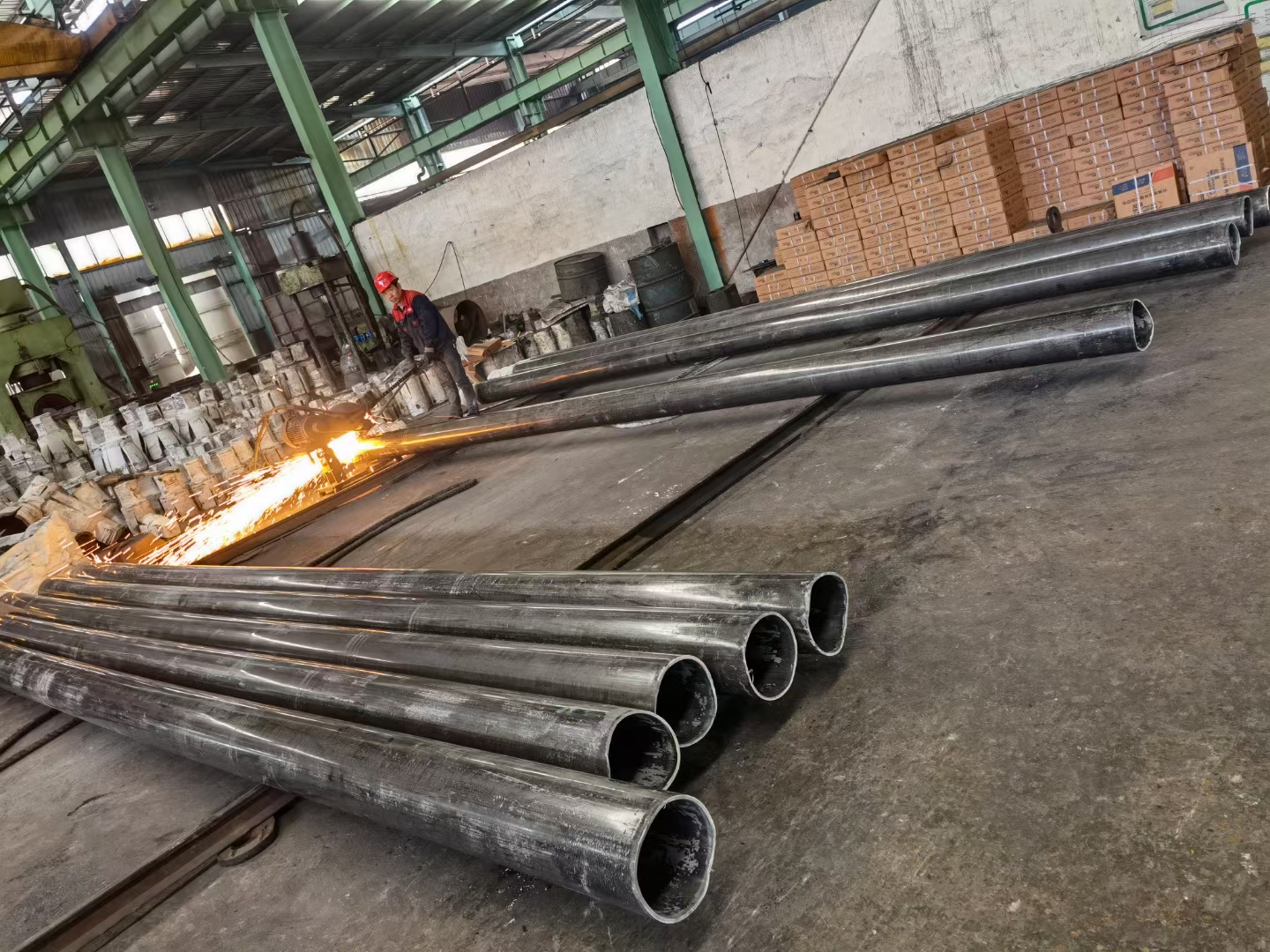 3.熱軋不銹鋼無縫管一般在自動軋管機組上生產。實心管坯經檢查并清除表面缺陷,截成所需長度,在管坯穿孔端端面上定心,然后送往加熱爐加熱,在穿孔機上穿孔。在穿孔同時不斷旋轉和前進,在軋輥和頂頭的作用下,管坯內部逐漸形成空腔,稱毛管。再送至自動軋管機上繼續軋制。 后經均整機均整壁厚,經定徑機定徑,達到規格要求。利用連續式軋管機組生產熱軋無縫鋼管是較先進的方法。
